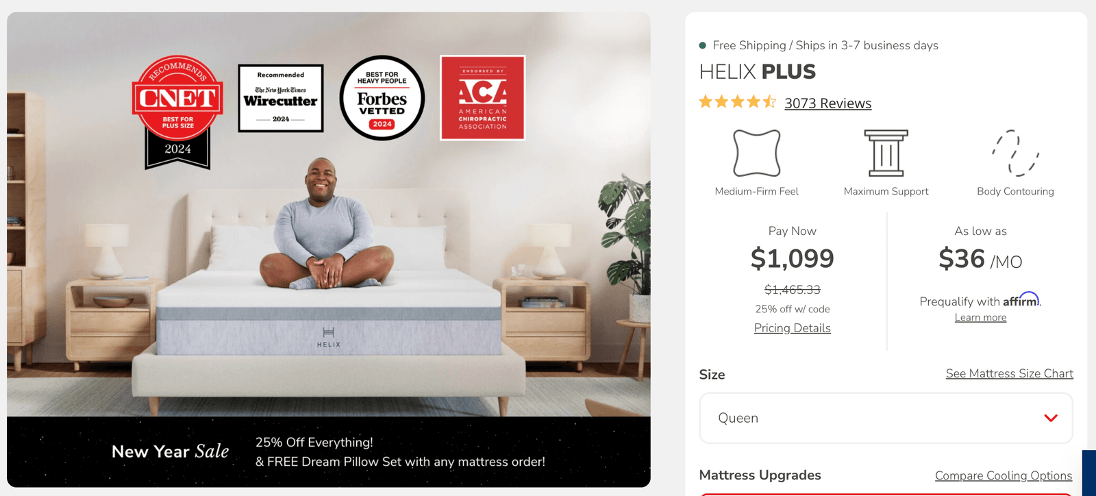 Mattresses built for heavy people are usually firm, but the Helix Plus has a rare sinking feeling associated with memory foam.